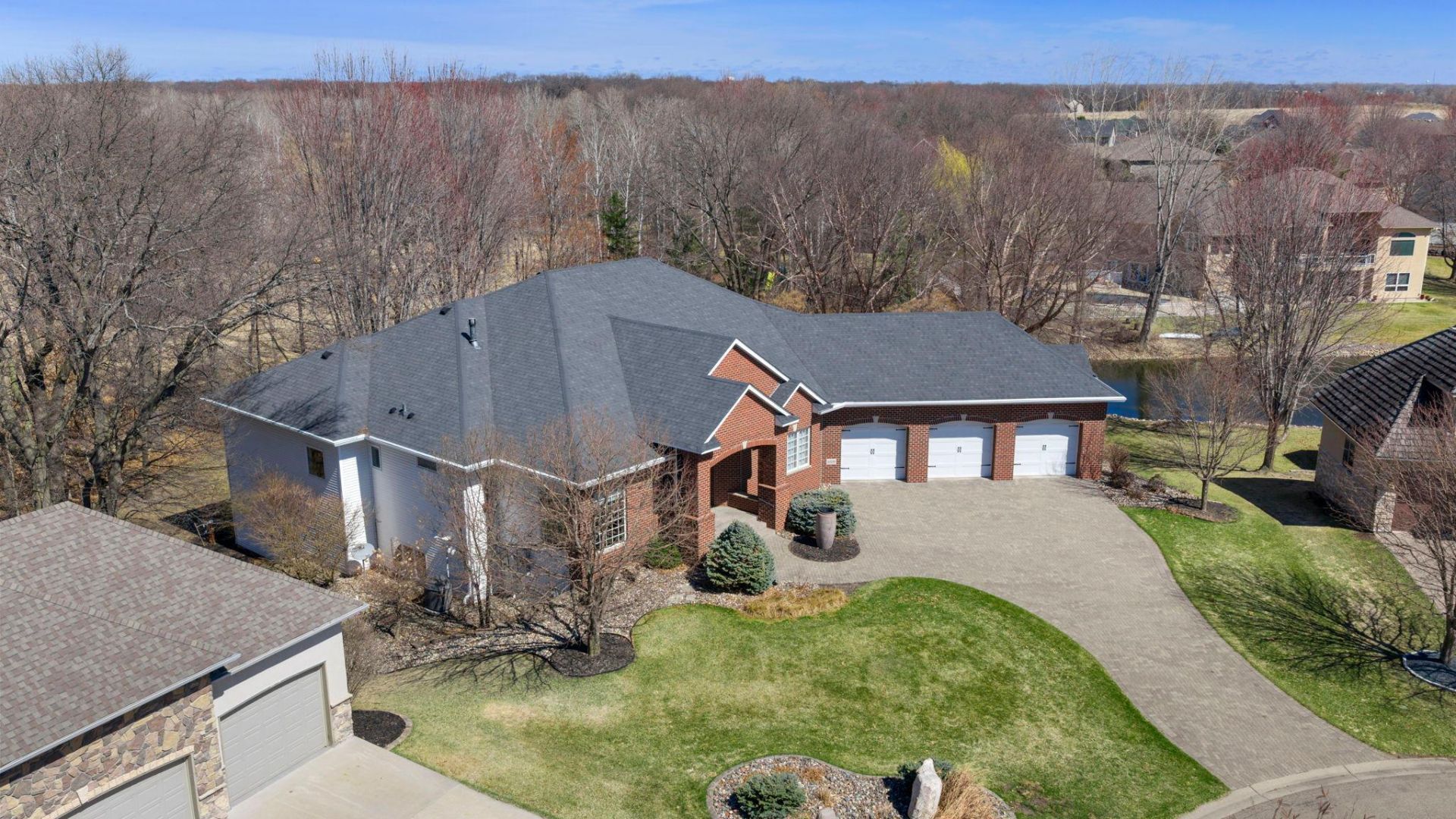 Tucked away on a quiet cul-de-sac with no rear neighbors, this exceptional Blaine property offers a rare combination of privacy, scale, and craftsmanship, backing to natural surroundings with serene wildlife views and a scenic water feature just steps away.With over 6,700 finished square feet, this home is designed for both everyday living and elevated entertaining. The main level showcases a true chef's kitchen featuring custom cabinetry, a massive center island, cooktop, double ovens, huge walk-in pantry, and stunning woodwork throughout. Beautiful hardwood floors, a four-season great room, and multiple gas fireplaces create warmth and character across the home's expansive layout.The upper level and owner's suite are thoughtfully designed for comfort, featuring a luxurious private bath with a jetted tub, walk-in shower, and a full room-sized walk-in closet. Zoned heating and cooling, along with in-floor Wirsbo heat in the lower level and owner's suite, provide year-round efficiency and comfort.The walkout lower level is an entertainer's dream with a full second kitchen, spacious gathering areas, and access to the paver patio and backyard. Ideal for multi-generational living, hosting, or extended stays.Additional highlights include a heated and finished 1,140 sq ft garage plus a rare spancrete garage below, paver driveway, maintenance-free deck, screened porch, custom Marvin windows and doors, and a dedicated office with custom built-ins.Major updates include roof and siding (2017) and a recently replaced boiler. Connected to city sewer and water in a prime south Blaine location.Meticulously maintained and thoughtfully designed?this is a rare opportunity to own one of the most spacious and well-appointed homes in the area at an exceptional value.Note: this home is located just minutes from 35W for easy access to all parts of the Twin Cities. Also, this home is within minutes of all Blaine has to offer, Target, National Sports Center, The TPC, multiple Starbucks, Blaine City Hall plus more! Please see virtual tour for additional photos & video.