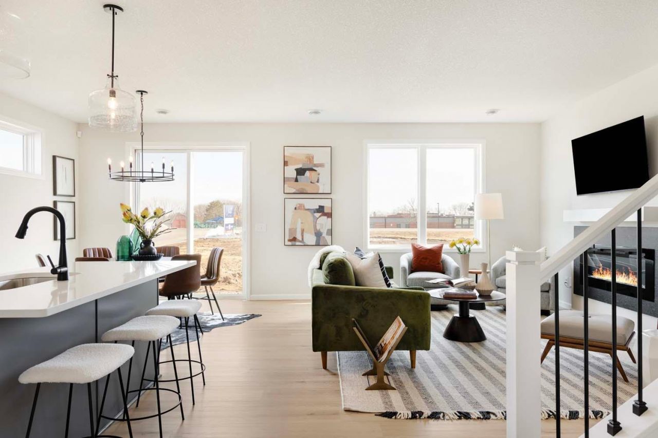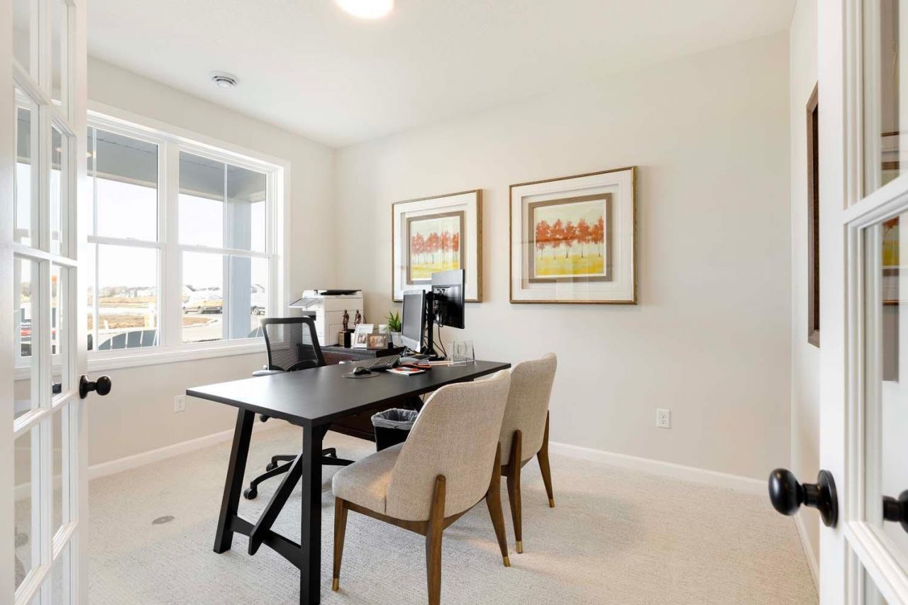 Hurry, this home won't be available for long. This quick move in 'Reiley two story patio home with 4 season porch is being built by Robert Thomas Homes in North Star of Lake Elmo at the end of a CUL-DE-SAC with a scheduled completion late June. This thoughtfully designed home showcases high-quality craftsmanship and modern finishes throughout, offering both style and everyday functionality. The stunning kitchen is a true centerpiece, featuring hand-crafted custom frameless shaker-style cabinetry with soft-close doors and drawers, 42 upper cabinets, a convenient garbage and recycling rollout, and a spacious pantry with built-in cabinets and solid shelving above. A sleek gas range with stainless steel hood, along with a French door refrigerator, complete this well-appointed space. The open main level boasts 9' ceilings with knockdown texture and upgraded SPC flooring, creating a bright and inviting atmosphere that flows effortlessly into the gathering room, highlighted by a cozy gas fireplace with quartz surround and mantle, plus a media-ready wall for a future wall mounted TV. A main floor office with double doors adds flexibility for work or study plus the 4 season porch is a perfect place to relax or enjoy that morning cup of coffee. Upstairs and throughout, you'll find beautiful pre-finished white Mission-style millwork, full window casing, and thoughtful details like stair tread lighting and a stylish railing. The primary suite offers a relaxing retreat with a luxurious soaking tub, tiled shower with heavy, frameless glass, solid closet shelving, while added conveniences such as an loft space, front-load washer and dryer, window blinds, water softener, and tankless water heater ensure comfort and efficiency. Outside, the home impresses with LP SmartSide siding on the front, stone accents, and a fully sodded yard complete with professional landscaping and irrigation. An insulated garage with opener and windows, gutters, and a 12x12 concrete patio pad complete this exceptional property. WHY ROBERT THOMAS HOMES AND NORTH STAR OF LAKE ELMO: Experience thoughtfully designed living in the North Star Robert Thomas Homes. This well-planned community features a neighborhood pool and clubhouse in the historic Schiltgen barn (coming in late 2026/2027). Residents enjoy a peaceful setting with convenient access to shopping, dining, and services. Known for its natural beauty and small-town charm, Lake Elmo offers parks, lakes, and trails, including Lake Elmo Park Reserve. The private neighborhood pool and clubhouse will foster connection, while home options provide flexibility, blending comfort, convenience, and community. Ask how to receive $10,000 toward closing costs with our preferred lender and title company. Photos are from a previous model with a similar floorplan but may show optional features not included in this pricing.
