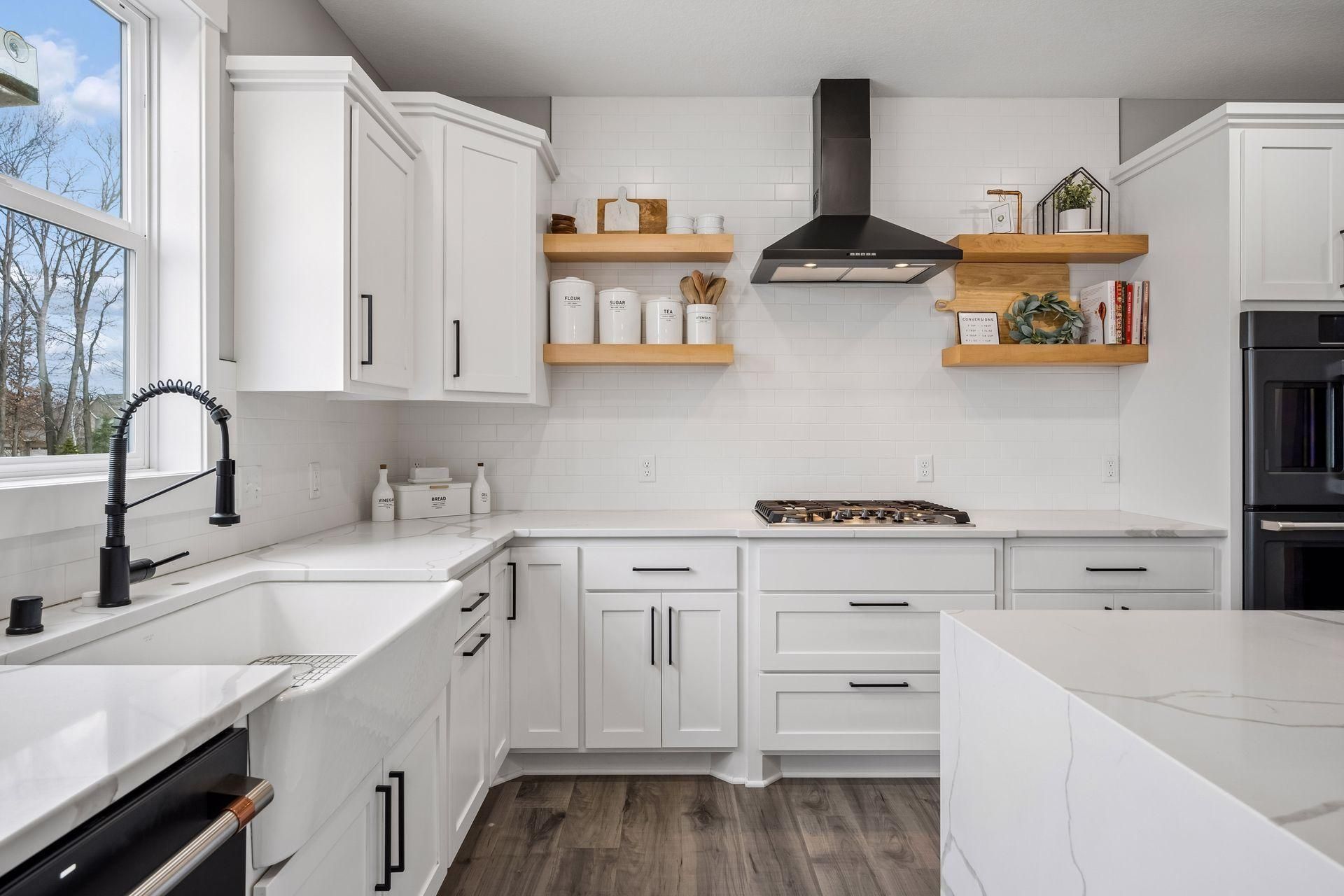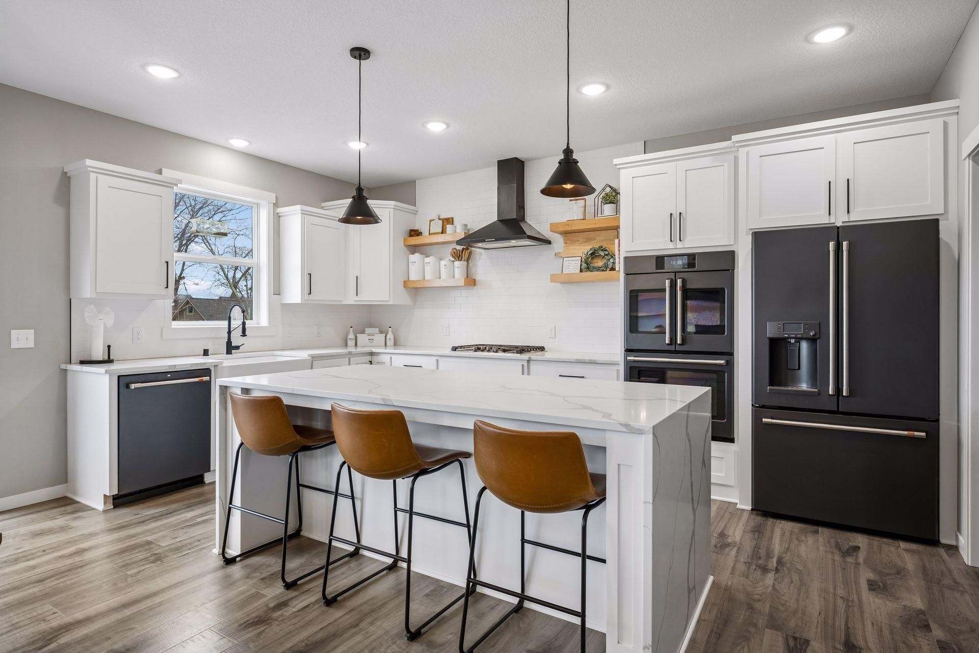 Welcome home to this stunning, modern two-story nestled on a quiet cul-de-sac! The open-concept main floor features a front office/flex room, custom tile fireplace, LVP flooring, and large windows overlooking the beautiful backyard with mature trees. The gourmet kitchen is a chef's dream with waterfall countertops, high-end appliances, gas cooktop, double oven, island microwave, and a spacious pantry. Upstairs offers a versatile loft, a large primary suite with walk-in closet and a luxurious bath featuring a tiled shower and bench, plus three additional bedrooms, laundry, and a guest bath. The unfinished lower level is ready for your vision. Enjoy the backyard oasis with a huge deck, paver patio, firepit, water feature, and lush landscaping. Don't miss the heated 4-car garage with custom doors!