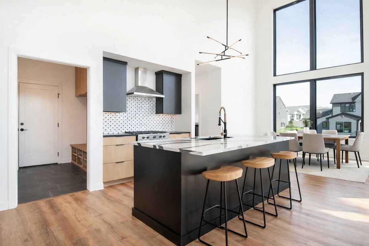 This 2024-built single-family home in Century Valley offers modern architecture and a versatile floor plan. The main level features an open-concept living area with a gas fireplace and mono-slope ceilings. The kitchen includes a large center island, double ovens, stainless-steel appliances and a walk-in pantry. Two bedrooms are on the main floor?including a primary suite with a private bath and walk-in closet?while two more bedrooms are on the walk-out lower level. The home has four bedrooms and three bathrooms. The finished basement provides a family room and an exercise room with access to a patio, complementing a deck off the main level. A three-car attached garage and 0.29-acre lot with in-ground sprinklers add convenience. Additional features include central air, forced-air heating and laundry on the main floor. Located minutes from public transit, schools and the Mayo Clinic, this move-in-ready home combines modern design with practical amenities.